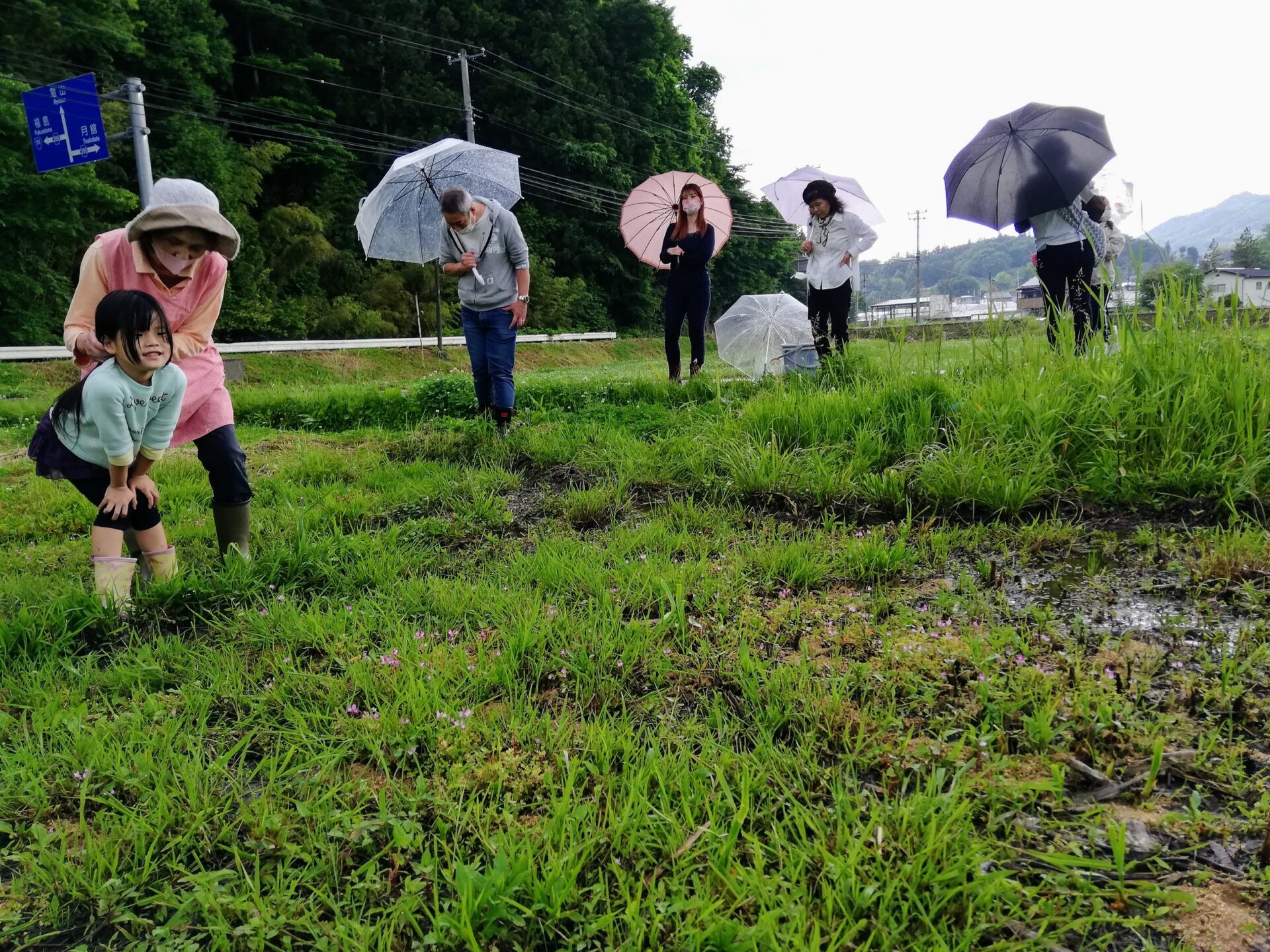 今回のイベント開催農家に集合し、まず、みんなで蓮華畑に向かいました。