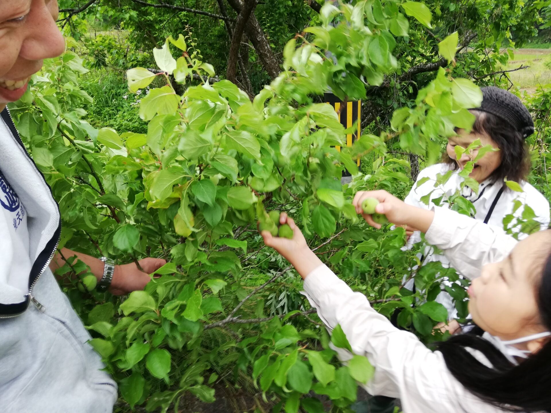 ちょうど青梅が収穫できる状態になっていたので、みんなで収穫しました。