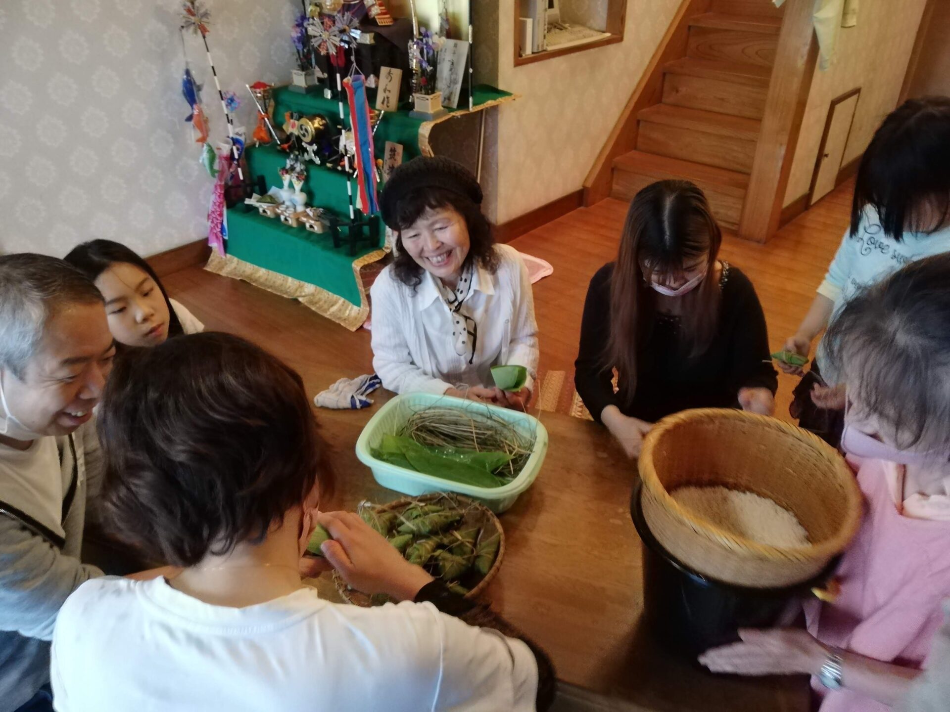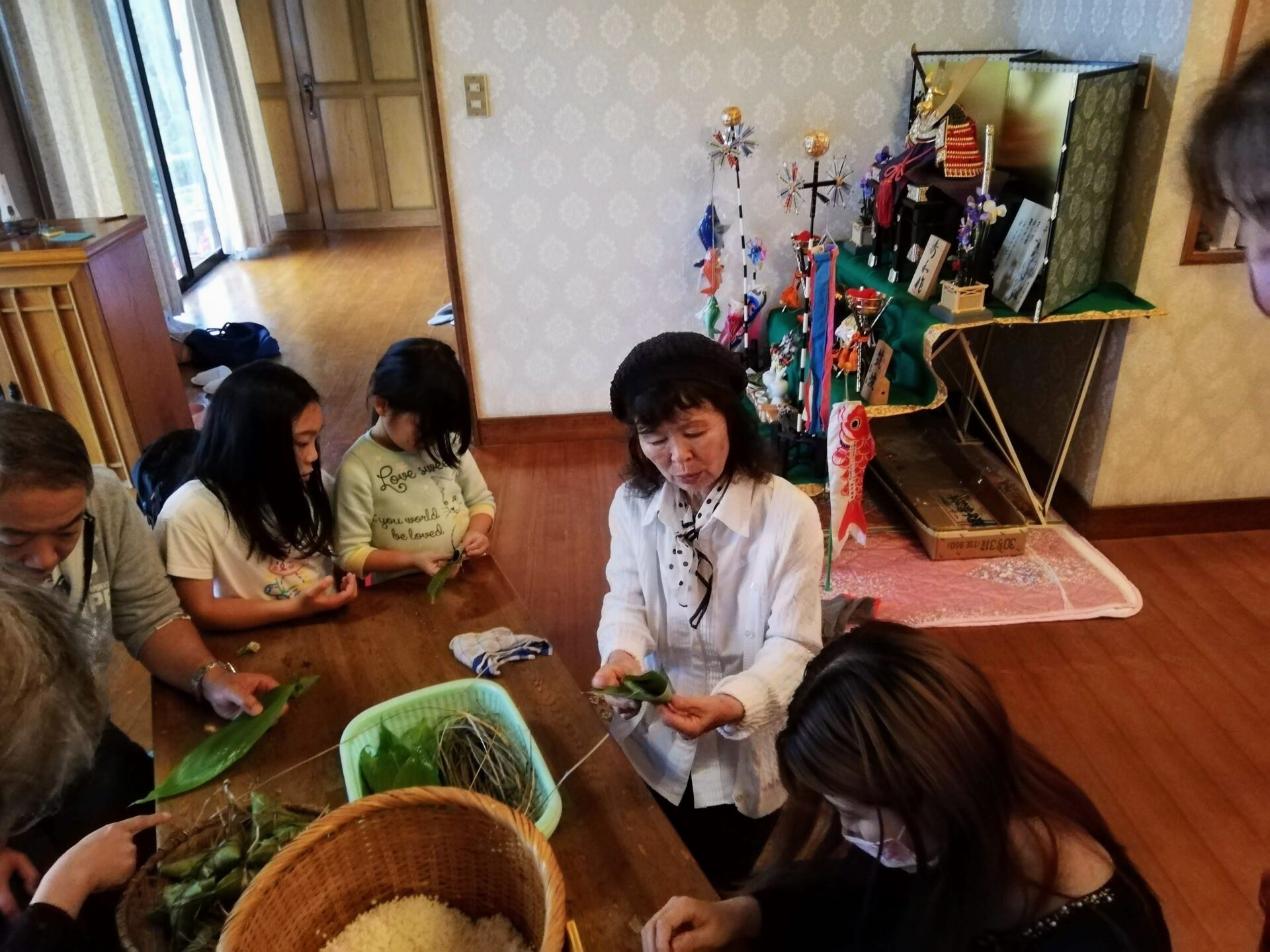 みんなで三角ちまき作りをしました。結構難しい、、、、